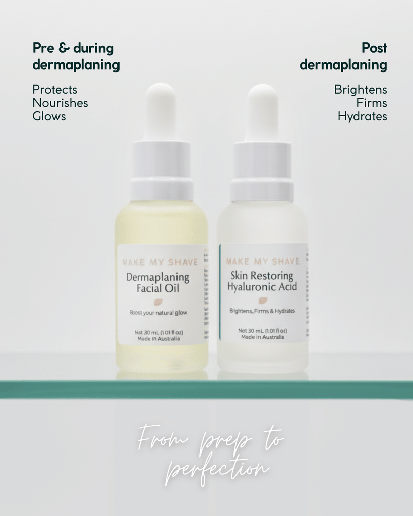 Absolutely. Our Hyaluronic Acid Serum was designed to complement your dermaplaning routine. It instantly calms and replenishes moisture after exfoliation, helping to protect and restore your skin barrier for a soft, healthy glow.